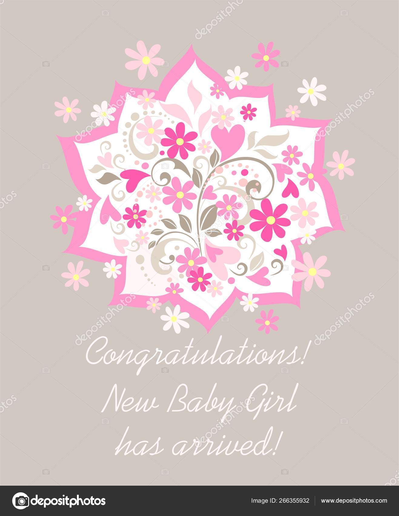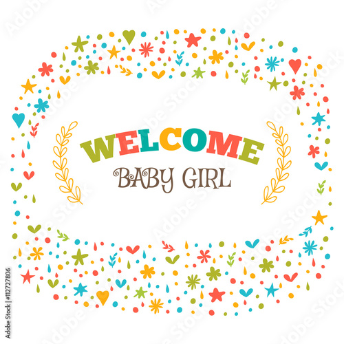 Welcome Baby Girl Announcement Card Baby Shower Greeting Card Baby Girl Shower Card Baby Girl Arrival Postcard Clipart K37615175 Fotosearch