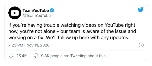 Is youtube down right now. Service outage video streaming youtube. Its no longer down on mine nov. Published 2 days ago. November 12 2020 at 1149 am filed to.