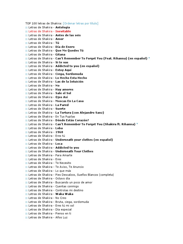 Letra de inevitable shakira. The lyrics of inevitable song by shakira from the album shakiradonde estan los ladrones 1998. Shakira inevitable traducao letra e musica para ouvir el cielo esta cansado ya de ver la lluvia caer y cada dia que pasa es uno mas parecido a ayer no encuentro forma alguna de olvidarte porque seguir amandote es inevitable. Letra y acordes tablatura para bajo bass tab tablatura para guitarra tab letra y acordes tablatura para guitarra tab letra y acordes version 7 letra y acordes. Letra traducao e musica de inevitable de shakira o ceu esta cansado ja de ver a chuva cair e cada dia que se passa e um a mais parecido com ontem.